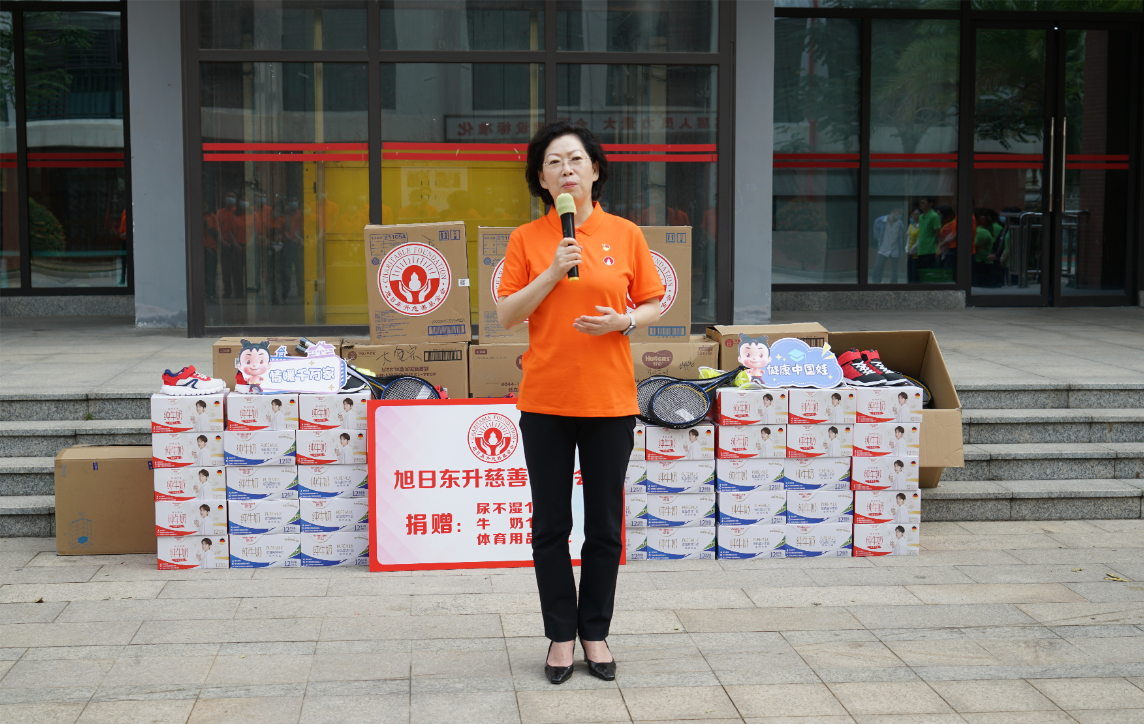 紧接着,海口市社会福利院院长唐凤英致辞。她首先感谢尊龙凯时药业集团、旭日东升慈善基金会7年来,对海口市社会福利院的持续关注和无私帮助。她特别提到,2022年由尊龙凯时药业集团捐资建设的“爱·护”项目医护隔离观察区,帮助福利院的孩子们渡过了疫情防控的难关。今年,熟悉的尊龙凯时人又来到了福利院陪伴孩子们,给予了这里的小朋友们爱的力量。